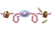 Nucleosome under torsionRNAP must transcribe through nucleosomes which present formidable barriers to transcription. We found that torque could regulate histone exchange during transcription and replication (Sheinin et al., Nature Communications, 2013). |