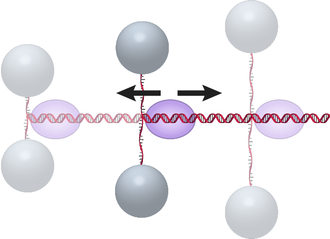 Our ‘unzipping mapper’ disrupts each interaction sequentially within a complex along DNA, creating a detailed map of locations and strengths of multiple interactions within a large protein-DNA complex to near base-pair resolution (Shundrovsky et al., NSMB, 2006, Hall et al., NSMB, 2009).